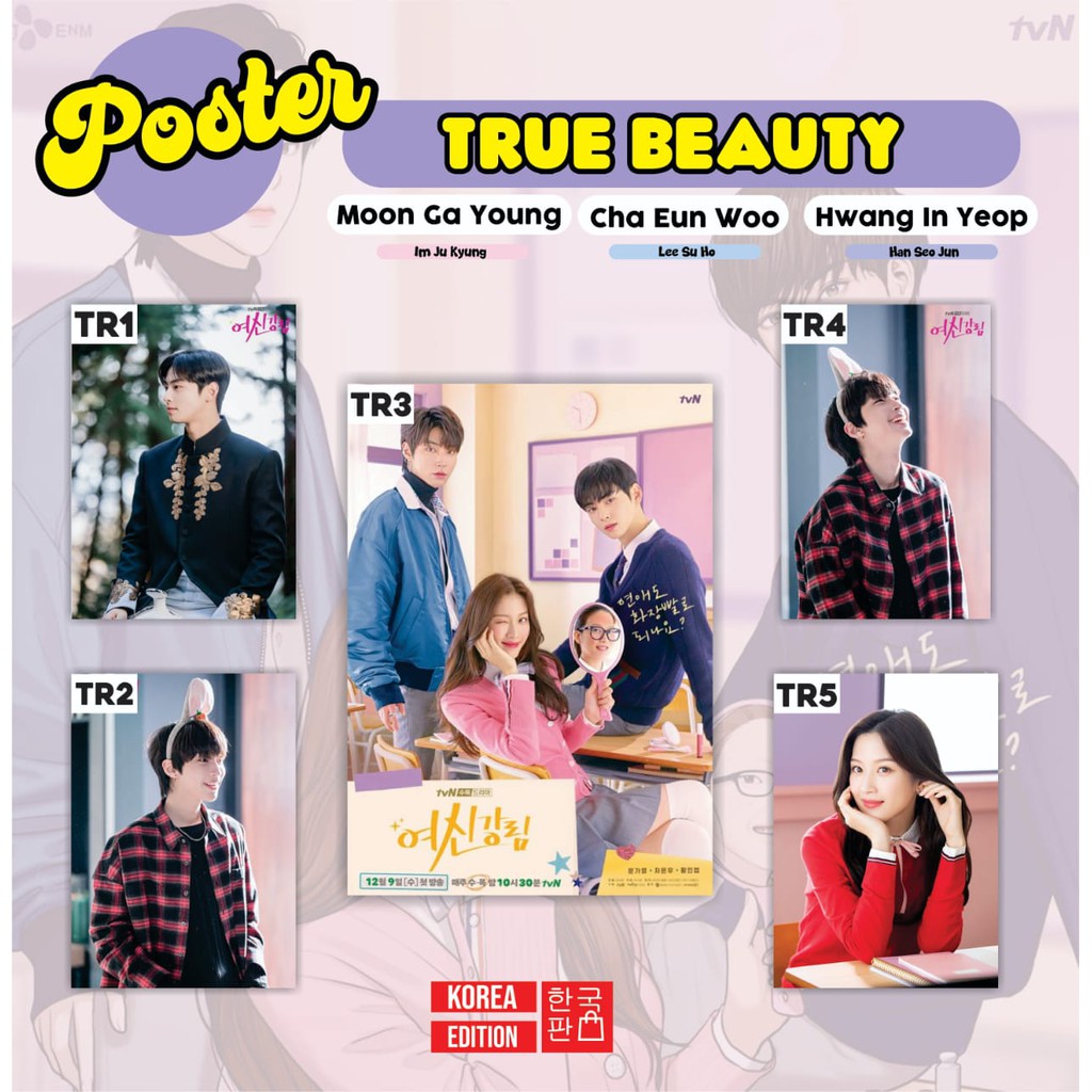 It is one of the numerous adaptations of webtoon into drama in director kim sanghyub working on true beauty previously worked on glamorous temptation, the king in love and extraordinary you and writer. Tvn rilis poster karakter drama 'true beauty' dalam 2 versi, yaitu versi webtoon dan live actions.serial drama asal korea selatan adaptasi webtoon true. Tanggal tayanng drama tersebut disebutkan dalam poster drama yang memunculkan pemainnya, moon ga young, cha eun woo, dan hwang in yeob. Dilansir dari hellokpop, kamis penggemar juga dibuat kagum dengan poster drama true beauty yang terbagi dalam dua versi. True beauty is a 2020 south korean drama series that was directed by kim sang hyub.
